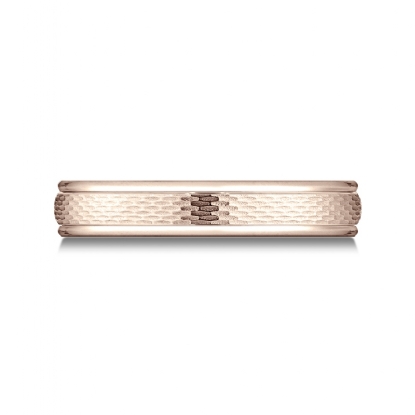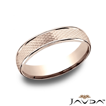 Mesh Finish Center Round Edge Unisex Wedding Band 14k Rose Gold