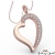 Round Pave E - F color Diamond Heart Pendant 18k Rose Gold with Silver Chain 18" (0.15Ct. tw.)
