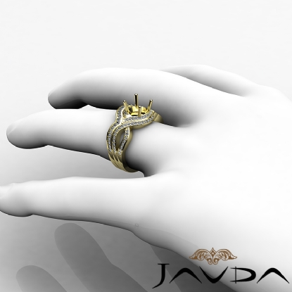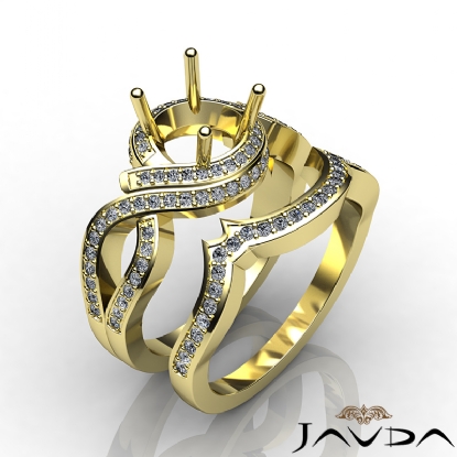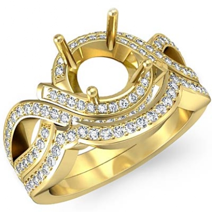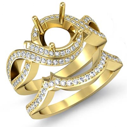 Diamond Bridal Set Curve Shank Ring Round Semi Mount 18k Gold (1.5Ct. tw.)