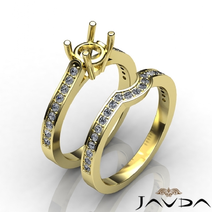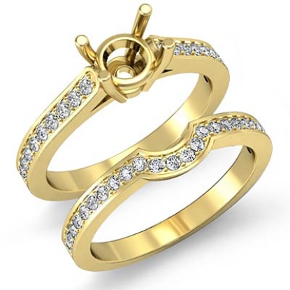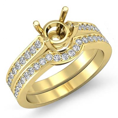 Simply elegant, this round semi mount engagement ring and matching set features round diamonds in pave setting along the shank. Made in 14k Gold Yellow, this bridal set is a stunner! (0.55Ct. tw.)