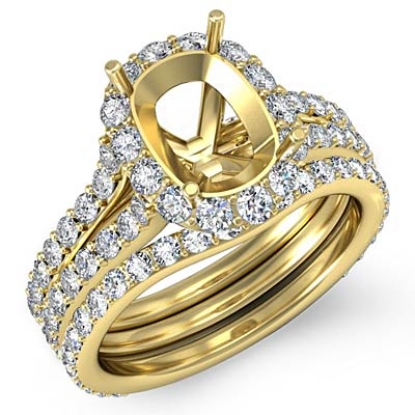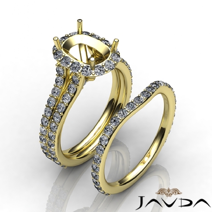 Propose to her with this semi mount cushion engagement ring and matching band that features round diamonds in halo and split shank. This bridal set is made in 14k Gold Yellow. (1.8Ct. tw.)