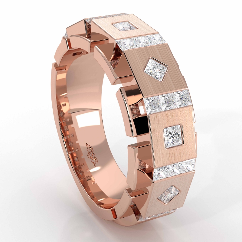 Square & kite Princess Diamond Men's Wedding Band 18k Rose Gold (1.35Ct. tw.)