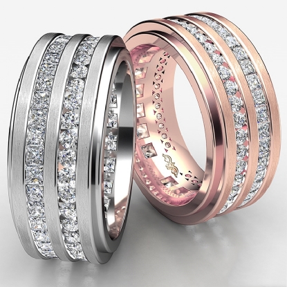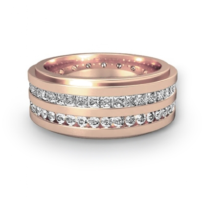 Stunning 2 row men's round & princess diamond eternity wedding band is made from precious metal 14k Rose Gold. Featuring polished finish step edge and round diamonds and