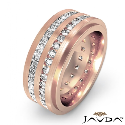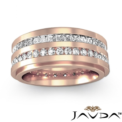 2 Row Men's Round & Princess Diamond Eternity Wedding Band 14k Rose Gold (2.5Ct. tw.)