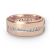 An elegant and stylish princess diamond eternity men's wedding band is made from 18k Rose Gold. Featuring polished finish step edge and princess diamonds set in a channel setting.