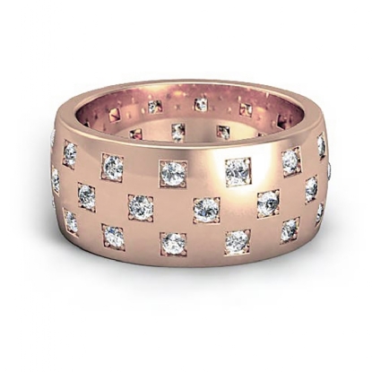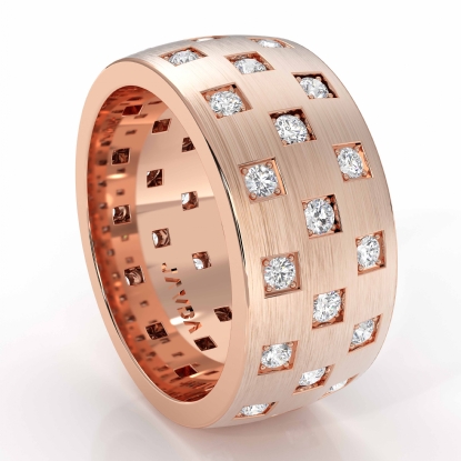 Solid checkered design men's diamond eternity wedding band is crafted in 14k Rose Gold. This polished finish ring features pave set round diamonds beautifully set in a checkered style.