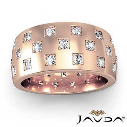 Checkered Design Men's Diamond Eternity Wedding Band 14k Rose Gold (1.35Ct. tw.)