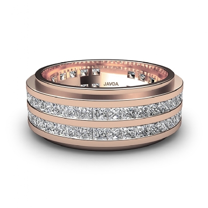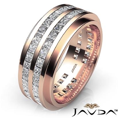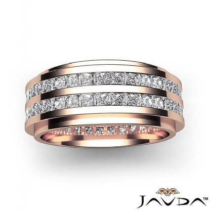 This handsome diamond eternity men's wedding band made from 18k Rose Gold. Featuring 2 row princess diamond beautifully set in a channel setting. Available in 14k & 18k white gold, yellow gold and rose gold & platinum 950. (4Ct. tw.)