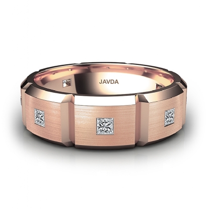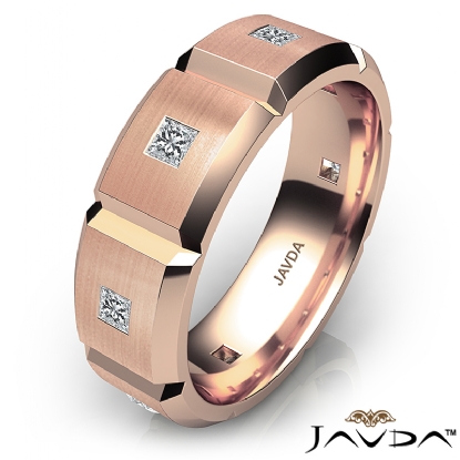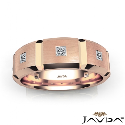 Beveled Edge Matte Men's Diamond Eternity Wedding Band 14k Rose Gold (0.5Ct. tw.)