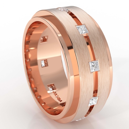 Center Grooved Princess Diamond Eternity Men's Wedding Band 18k Rose Gold (0.7Ct. tw.)