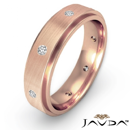 Bezel Diamond Matte Step Edge Men's Eternity Wedding Band 14k Rose Gold (0.16Ct. tw.)