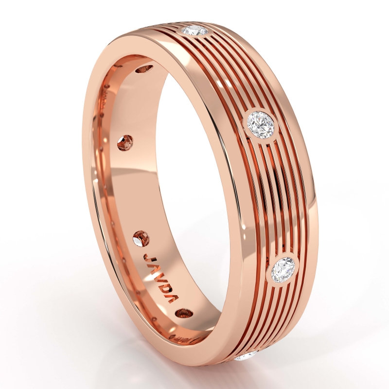 Round Bezel Diamond Ridged style Men's Wedding Band 18k Rose Gold (0.16Ct. tw.)