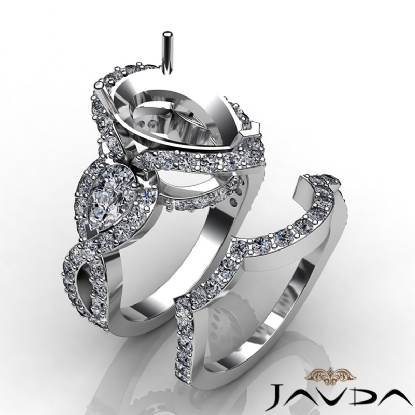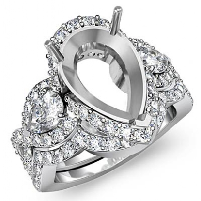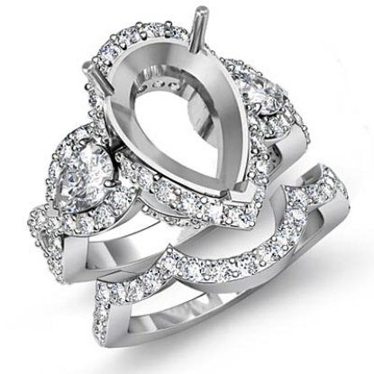 Diamond Engagement 3 Stone Ring Pear Semi Mount Bridal Set Platinum (2.08Ct. tw.)
