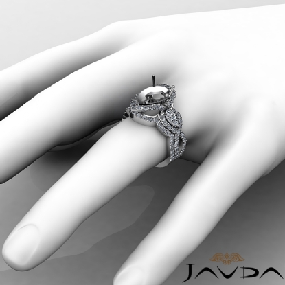Beautiful & delicate, this Platinum 950 semi mount engagement ring and matching band features round pave set diamonds on halo and criss cross shank. The side pear diamonds add to the beauty of this three stone bridal set. (2.08Ct. tw.)