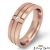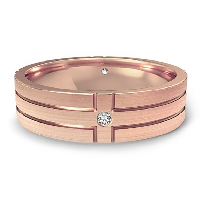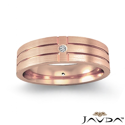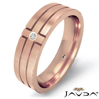 A stylish cross diamond matte finished men's eternity wedding band made from 14k Rose Gold. This ring has center cross with 4 round diamonds in a bezel setting. Available in 14k & 18k white gold, yellow gold and rose gold & platinum 950.