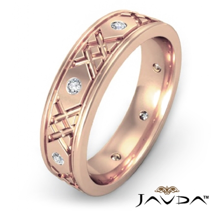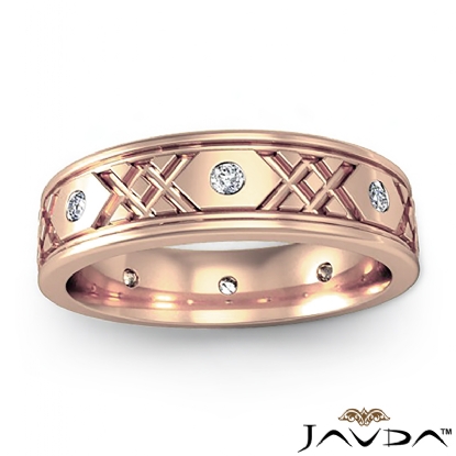 Round Edges Diamond Eternity Men's Wedding Band XO Style 14k Rose Gold (0.16Ct. tw.)