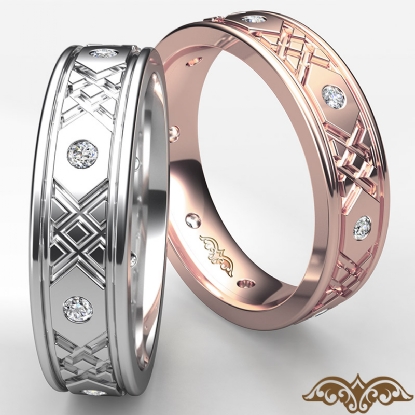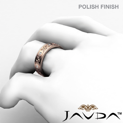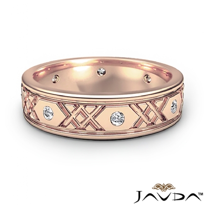 The solid high quality diamond eternity men's wedding band crafted in 14k Rose Gold. This polished finish ring features XO style and round edges with round diamonds in a bezel setting.