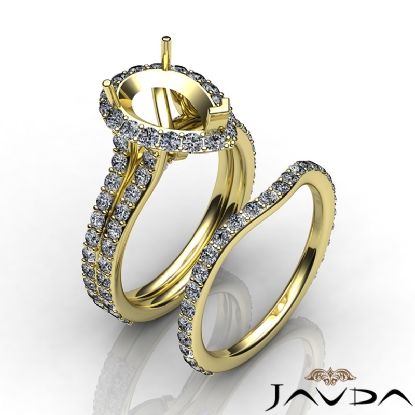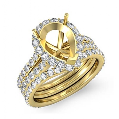 Capture your lasting love with this semi mount pear engagement ring and matching band that features round diamonds in halo and split shank. This bridal set is made in 18k Gold Yellow. (1.8Ct. tw.)
