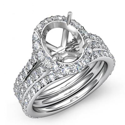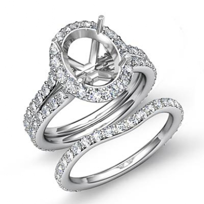 Oval Halo Diamond Semi Mount Engagement Wedding Ring Bridal Set Platinum (1.8Ct. tw.)