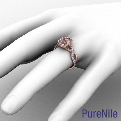 Criss Cross Shank Halo Oval Semi Mount Diamond Engagement Ring 14k Rose Gold (0.5Ct. tw.)