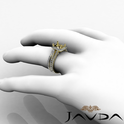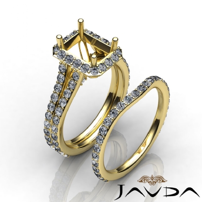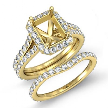 Get mesmerized with this semi mount bridal set, showcasing a diamond-laden split shank and halo in pave setting, with a matching band. This engagement ring is framed against enduring 14k Gold Yellow. (1.7Ct. tw.)