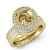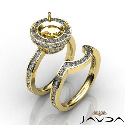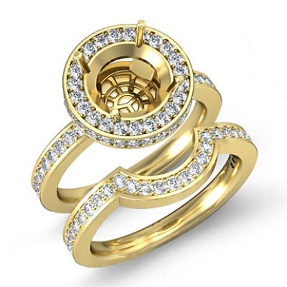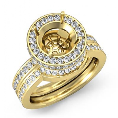 This beautiful round semi mount engagement ring and matching band feature round diamonds in pave setting along the halo and shank. Made in 18k Gold Yellow, this bridal set is . (1.2Ct. tw.)