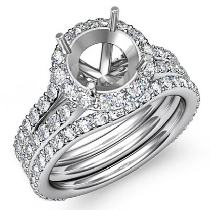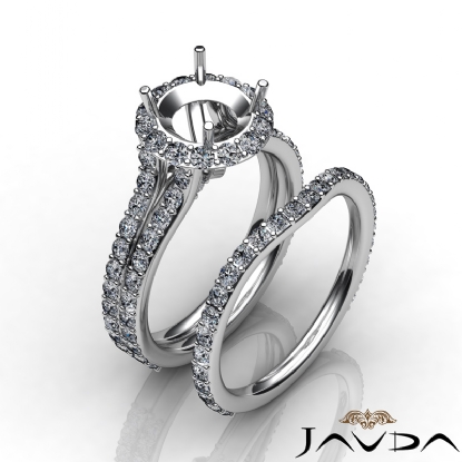 Round Halo Diamond Semi Mount Engagement Wedding Ring Bridal Set 18k W Gold (2.1Ct. tw.)