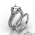 Beautiful & delicate, this semi mount engagement ring and matching band feature round pave set diamonds in halo and along the shank. Made in 18k Gold White, this bridal set is true elegance. (2.1Ct. tw.)