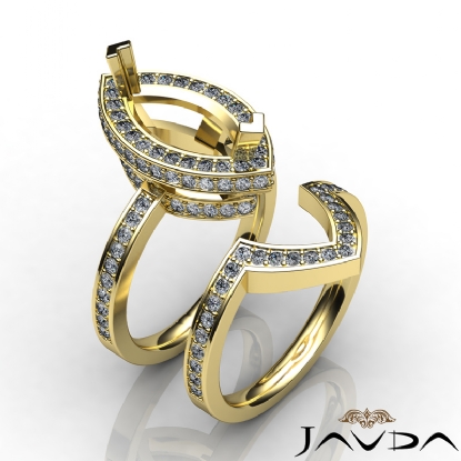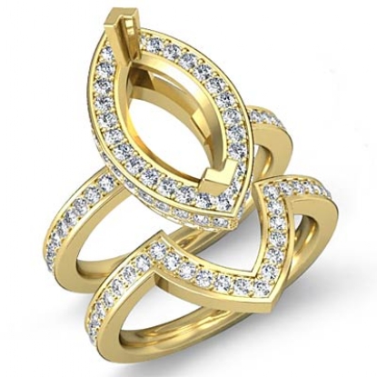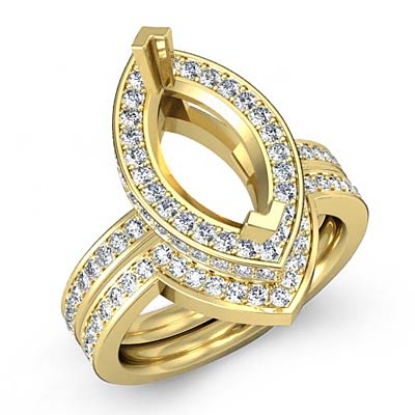 This magnificent marquise semi mount engagement ring and matching band feature round diamonds in pave setting along the halo and shank. Made in 14k Gold Yellow, this bridal set is . (1.8Ct. tw.)