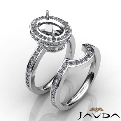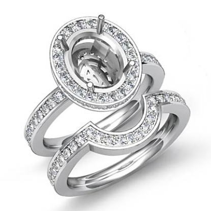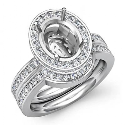 Diamond Oval Wedding Band Semi Mount Ring Platinum Bridal Setting (1.2Ct. tw.)