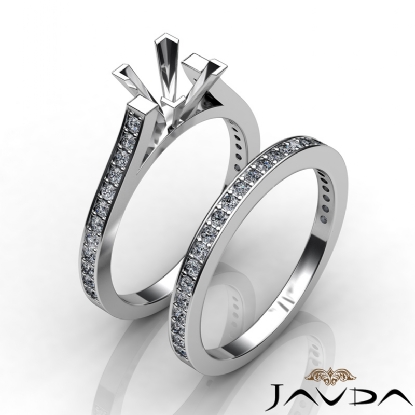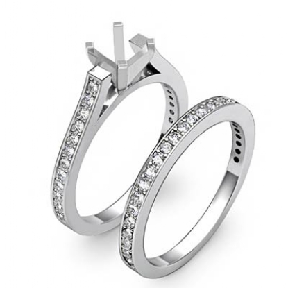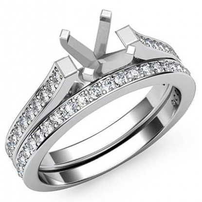 Pave Princess Diamond Engagement Bridal Ring Set Platinum Semi Mount (0.57Ct. tw.)