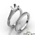 This semi mount diamond engagement wedding ring and matching band feature a center semi mount princess diamond in prong setting and pave set diamonds along the shank. This set is made in Platinum 950. (0.57Ct. tw.)