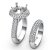 Stunning & intricate, this semi mount engagement ring comes with a matching band. It features sparkling pave set diamonds along the halo and the split shank. This bridal set is made in 18k Gold White. (2.5Ct. tw.)