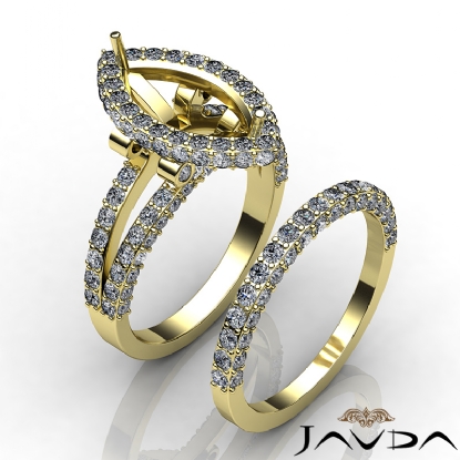Capture your lasting love, with this 14k Gold Yellow bridal set that consists of a semi mount engagement ring and a matching band, featuring round pave set diamonds in halo and split shank. (2.8Ct. tw.)