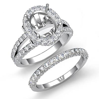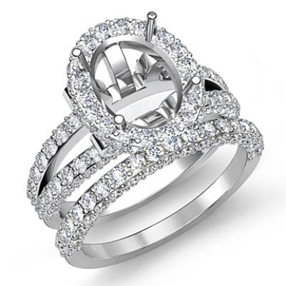 Halo Diamond Engagement Ring Oval Semi Mount Bridal Setting 18k W Gold (2.6Ct. tw.)