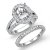 Ideal for the occasion, this 18k Gold White bridal set consists of a semi mount engagement ring and a matching band, featuring round pave set diamonds in halo and split shank. (2.6Ct. tw.)
