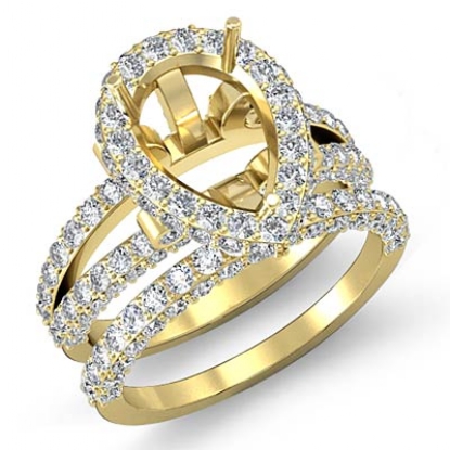 Diamond Vintage Engagement Ring Pear Bridal Set 14k Gold Semi Mount (2.72Ct. tw.)