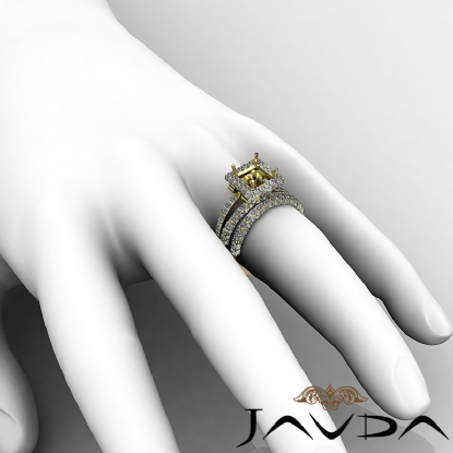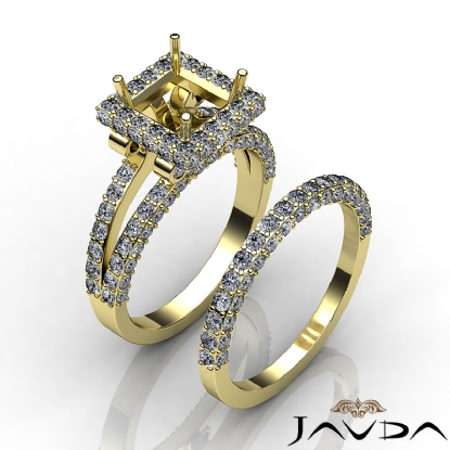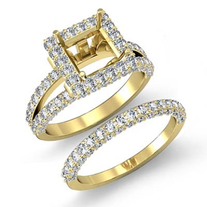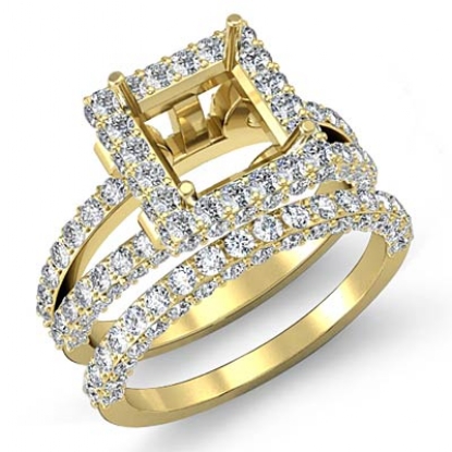 Princess Halo Diamond Semi Moun tEngagement Ring Bridal Set 14k Gold (2.78Ct. tw.)