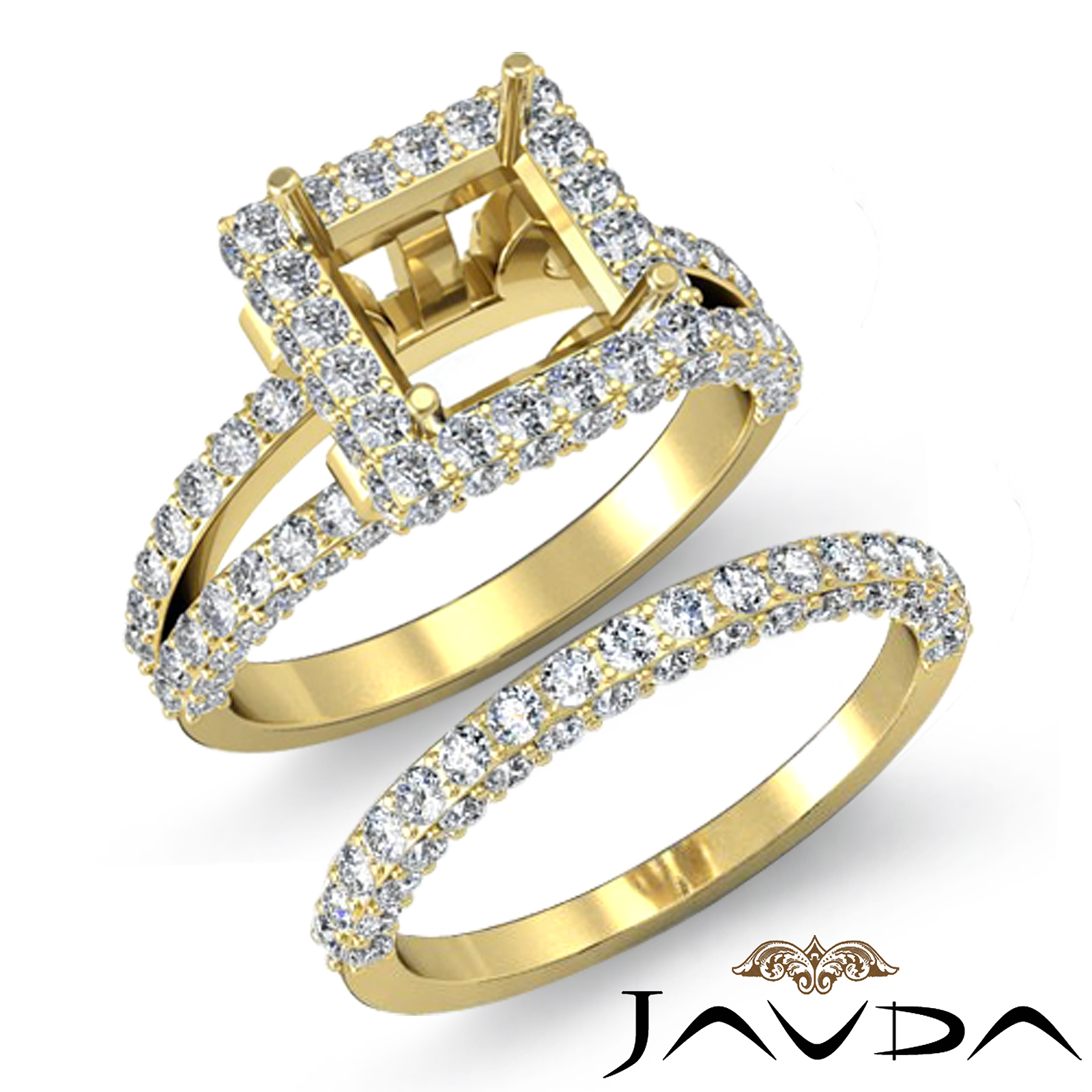 Princess Halo Diamond Semi Moun tEngagement Ring Bridal Set 18k Gold (2.78Ct. tw.)