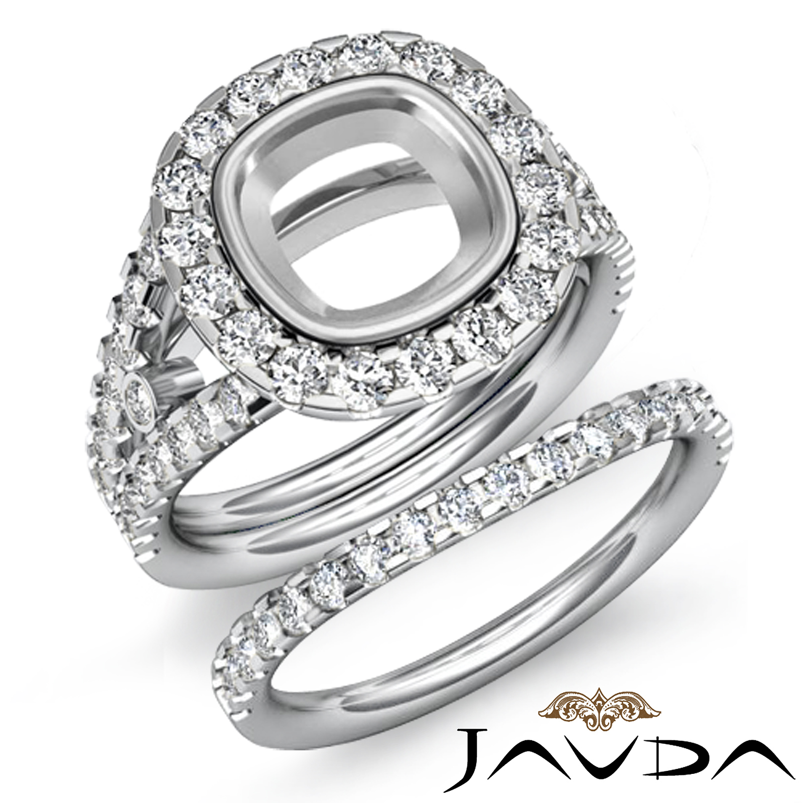 Halo Diamond Engagement Ring Bridal Set Platinum Cushion Semi Mount (1.7Ct. tw.)