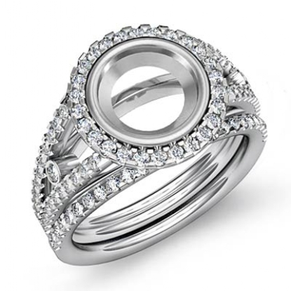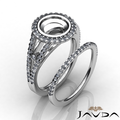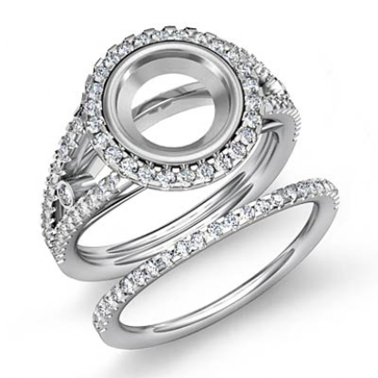 Round Halo Diamond Semi Mount Engagement Ring Bridal Set 18k W Gold (1.1Ct. tw.)