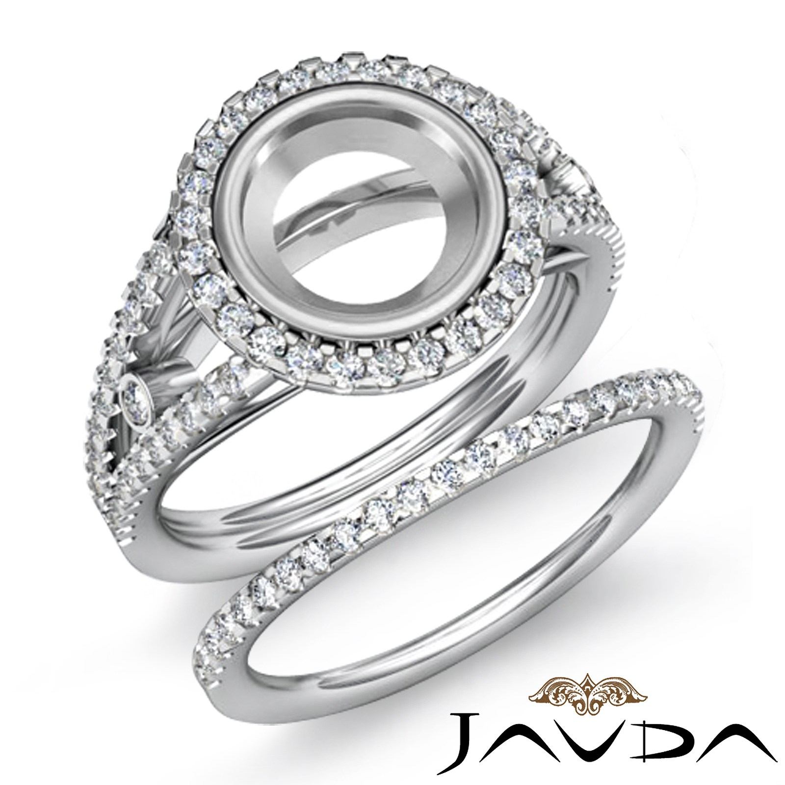 Round Halo Diamond Semi Mount Engagement Ring Bridal Set Platinum (1.1Ct. tw.)