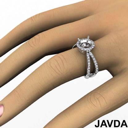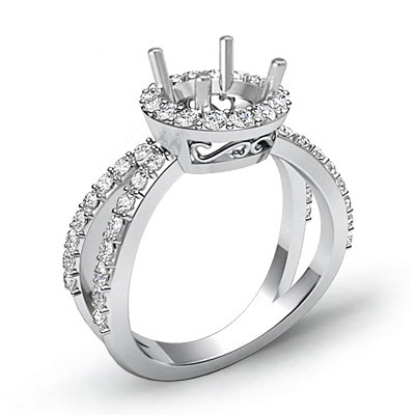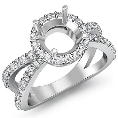 Diamond Engagement SemiMount Ring Split Shank 18k W Gold Halo Setting (0.75Ct. tw.)