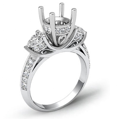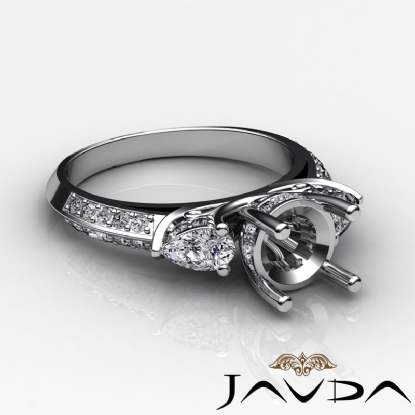 Pear Round Diamond 3 Stone Engagement Ring Semi Mount Setting 18k W Gold (1.21Ct. tw.)