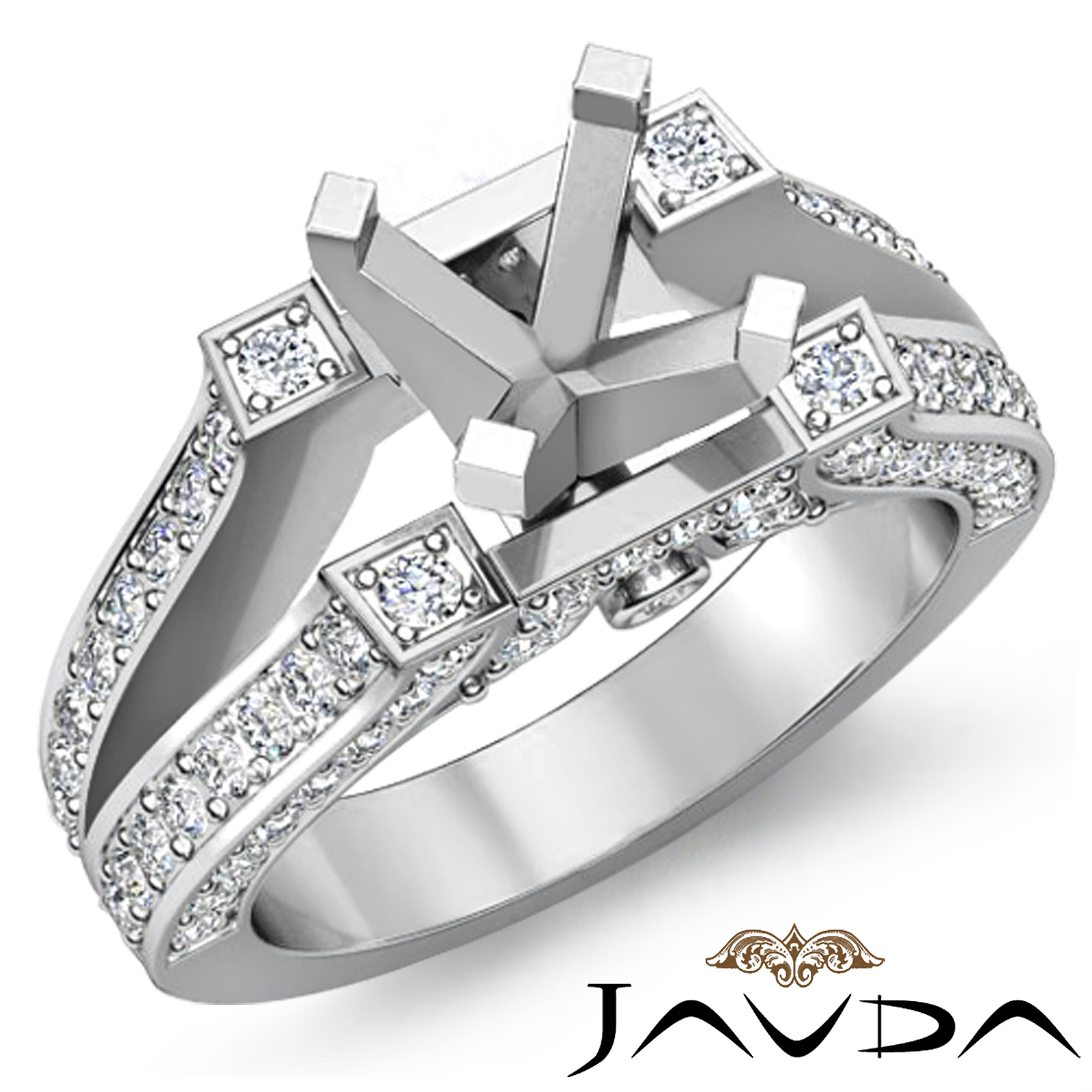 Antique Diamond Engagement Ring Pave Setting 18k W Gold Semi Mount (1.2Ct. tw.)