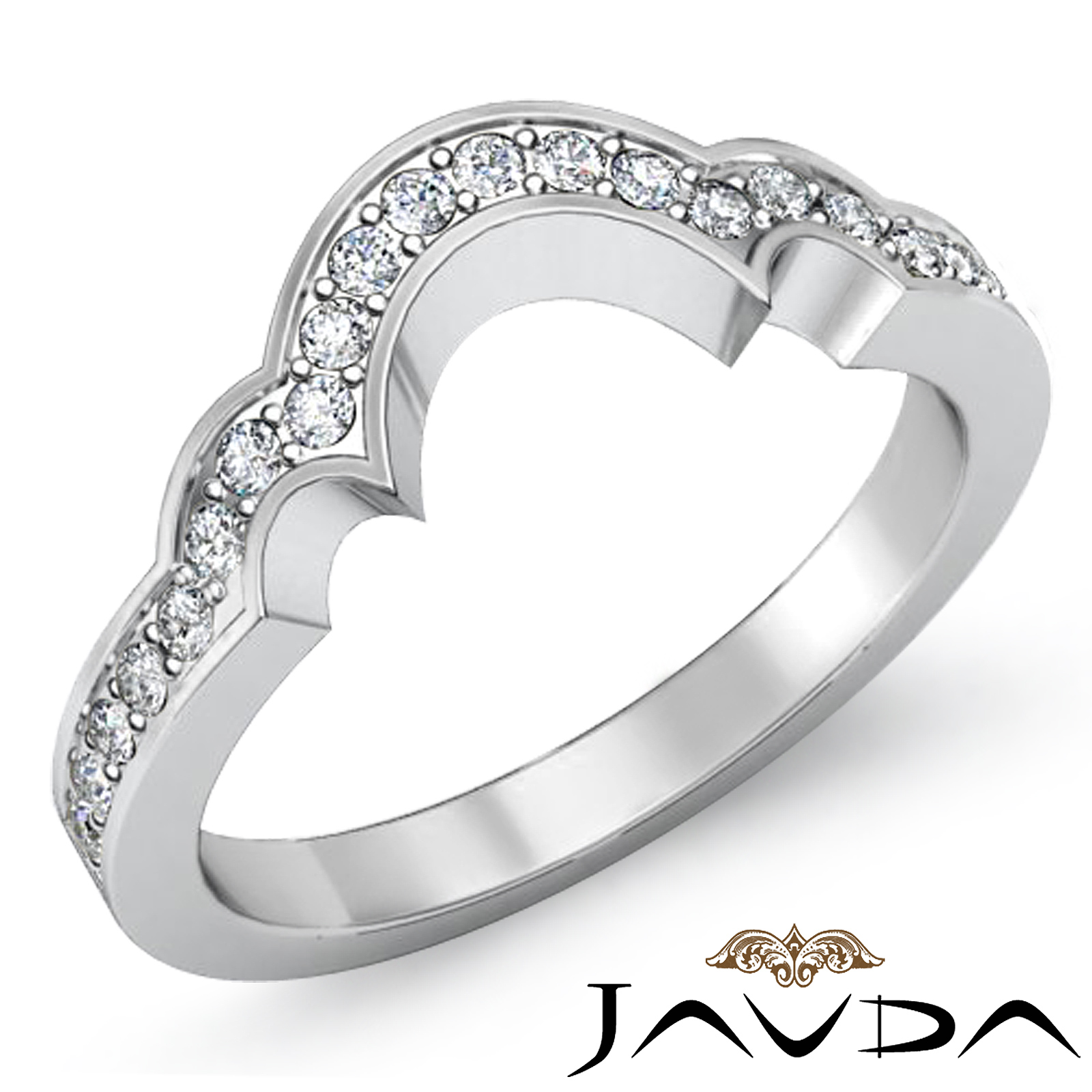 Pave Half Round Diamond Womens Wedding Matching Band Platinum Ring (0.45Ct. tw.)