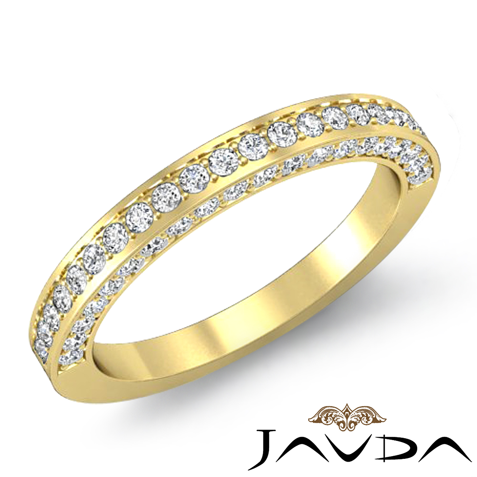 Round Pave Set Diamond Women's half Wedding Band made in 18k Gold Yellow . ideal match for teh Item # R403 Ring Setting. (1Ct. tw.)