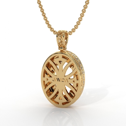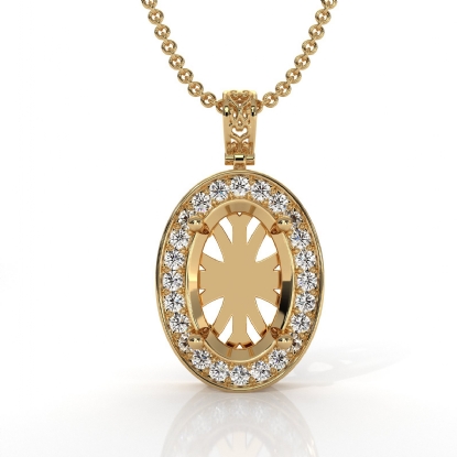 Pave Set Round Diamond Halo Oval Cut Solitaire Pendant in 14k Gold (0.63Ct. tw.)