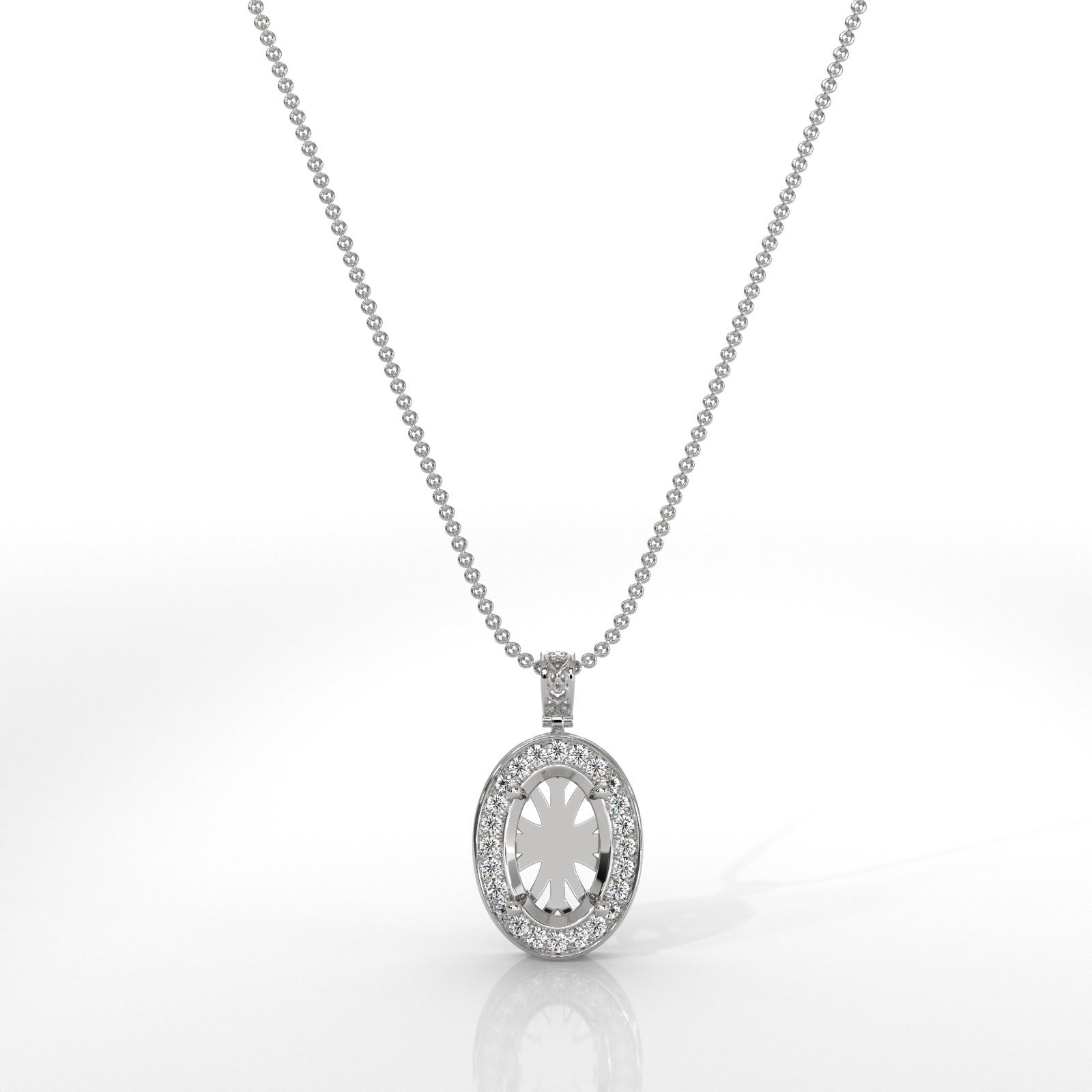Pave Set Round Diamond Halo Oval Cut Solitaire Pendant in 18k W Gold (0.63Ct. tw.)