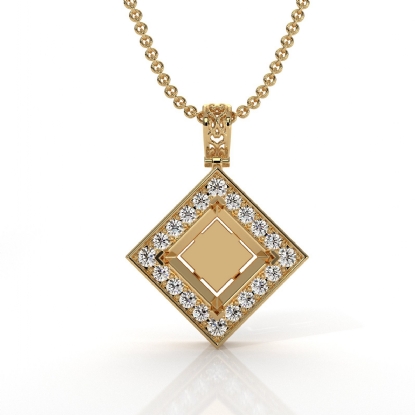 This round pave set diamond solitaire pendant is made for a princess cut center. Crafted in 18k Gold Yellow, it includes a halo of sparkling accents for timeless brilliance. Perfect for gifting or adding a luxurious touch to your collection. Includes a matching rolo link chain for a polished, elegant finish.